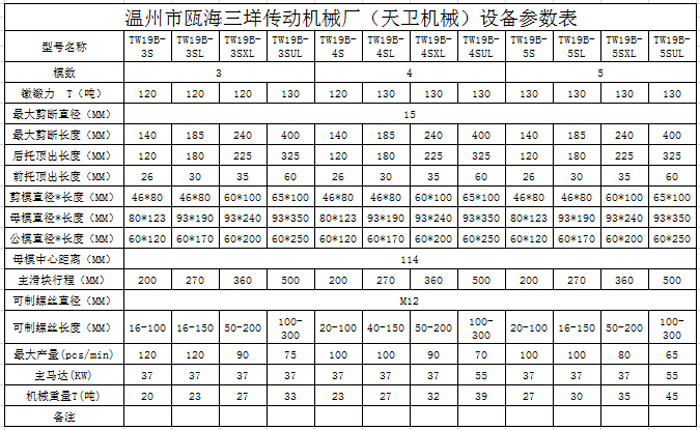 您當(dāng)前的位置:首頁(yè) / 產(chǎn)品中心 / 三模三沖冷鐓機(jī) / └ TW19B(M12)多工位冷鐓機(jī) / TW19B三模三沖多工位冷鐓機(jī)