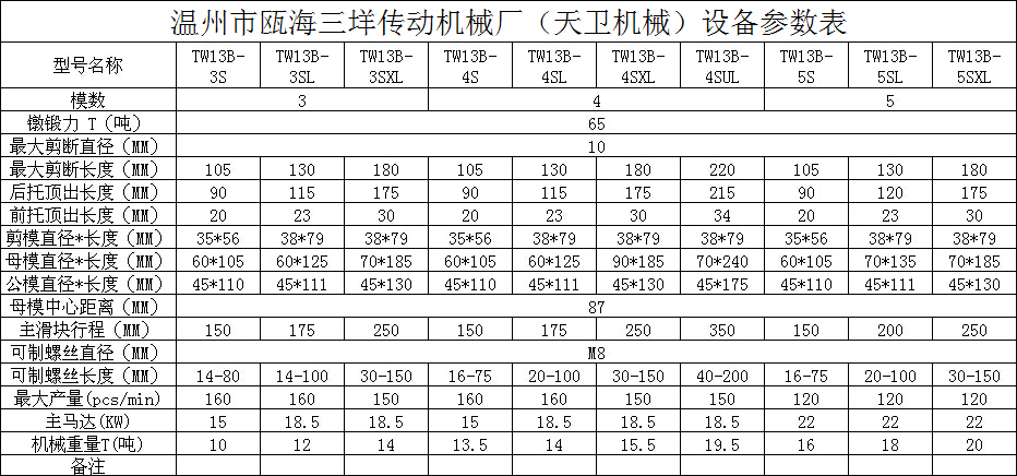 您當(dāng)前的位置:首頁 / 產(chǎn)品中心 / 四模四沖冷鐓機(jī) / └ TW13B(M8)全自動(dòng)多工位冷鐓機(jī) / TW13B四模四沖多工位冷鐓機(jī)