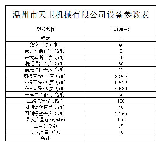 您當(dāng)前的位置:首頁(yè) / 產(chǎn)品中心 / 五模五沖多工位冷鐓機(jī) / └ TW10B(M6)多工位冷鐓機(jī) / TW10B-5S全自動(dòng)多工位冷鐓機(jī)